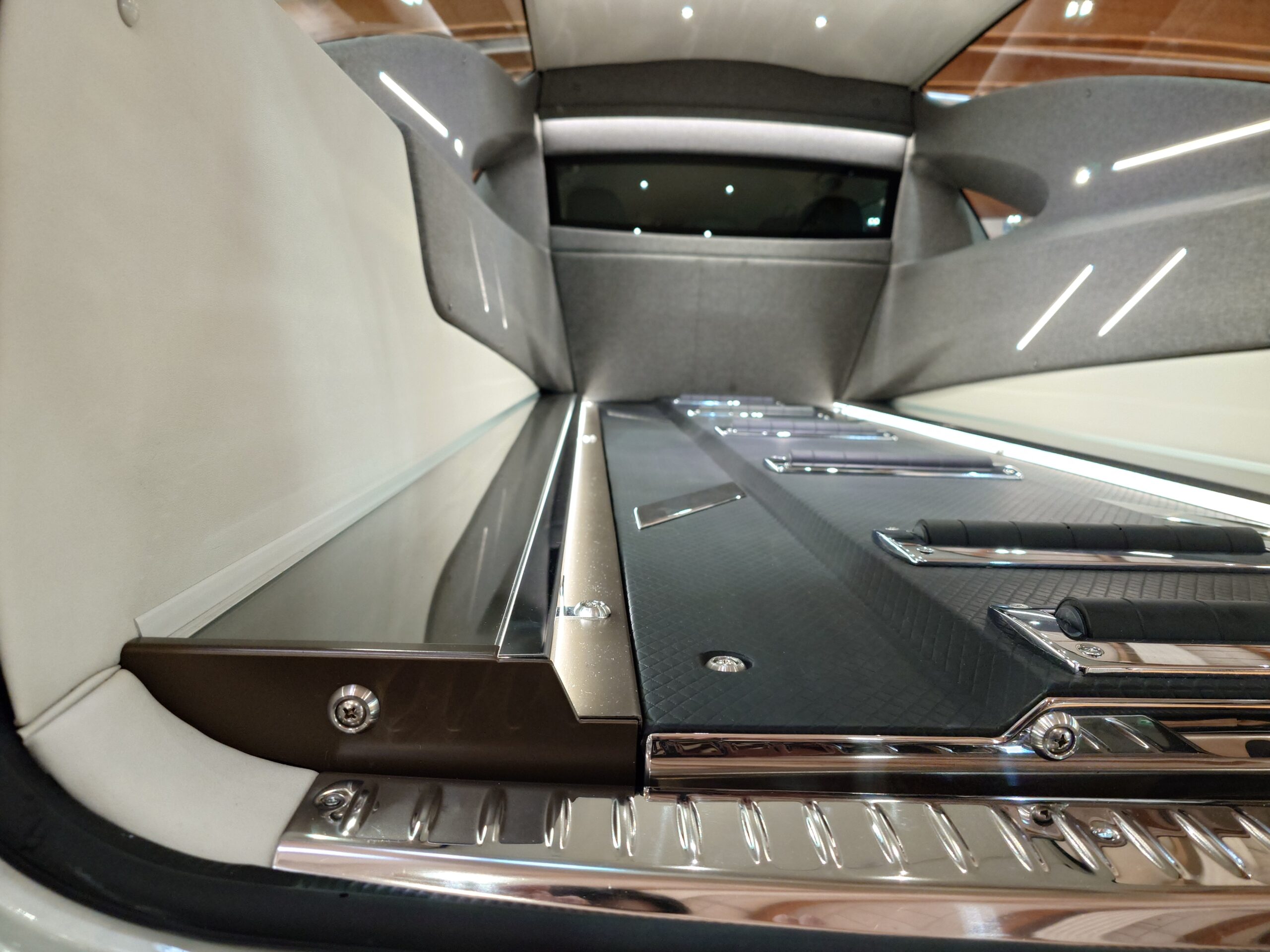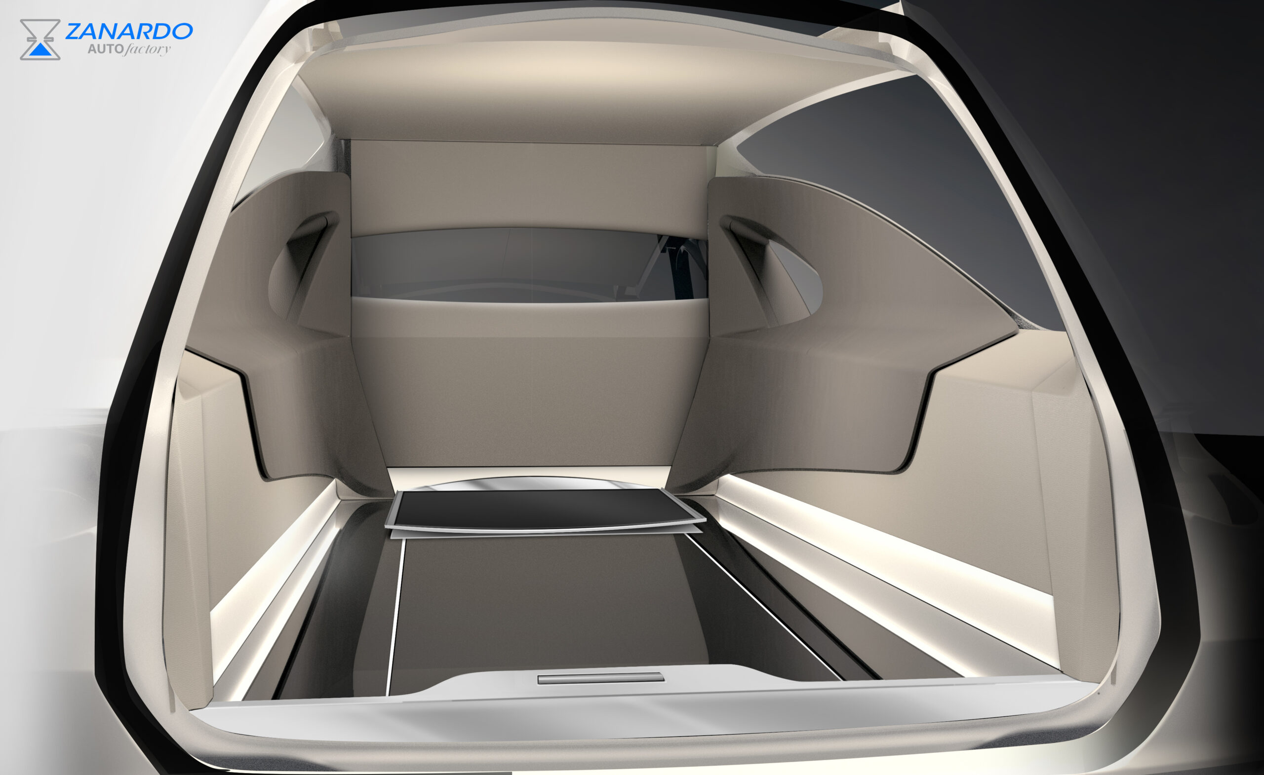 Interno rivestito in ecopelle, dettagli in carbonio, acciaio, vetro